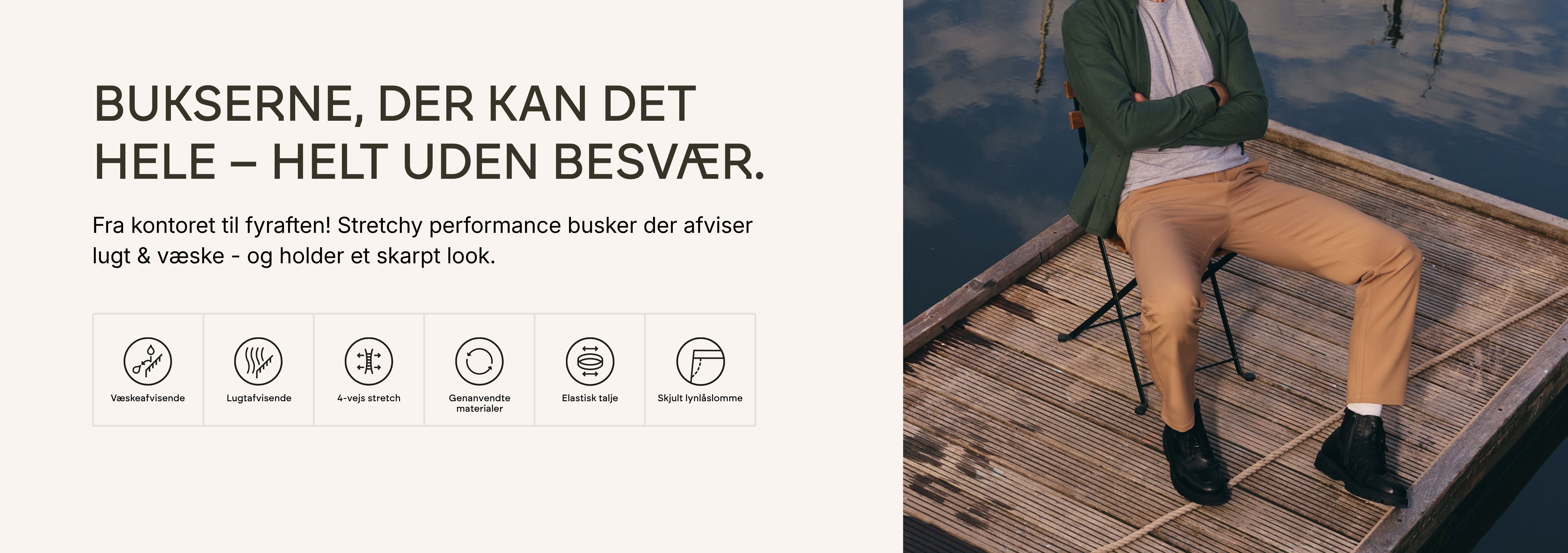 Lugtafvisende teknologi holder dig frisk hele dagen – ofte i flere dage. Kunder bærer deres Labfresh-bukser i gennemsnit 3,6 dage mellem vask.
