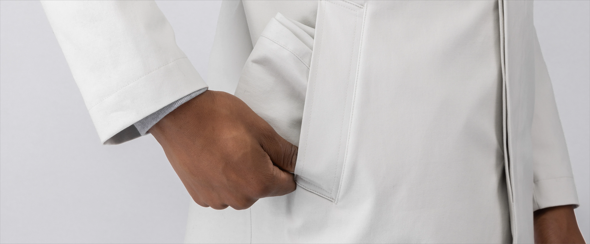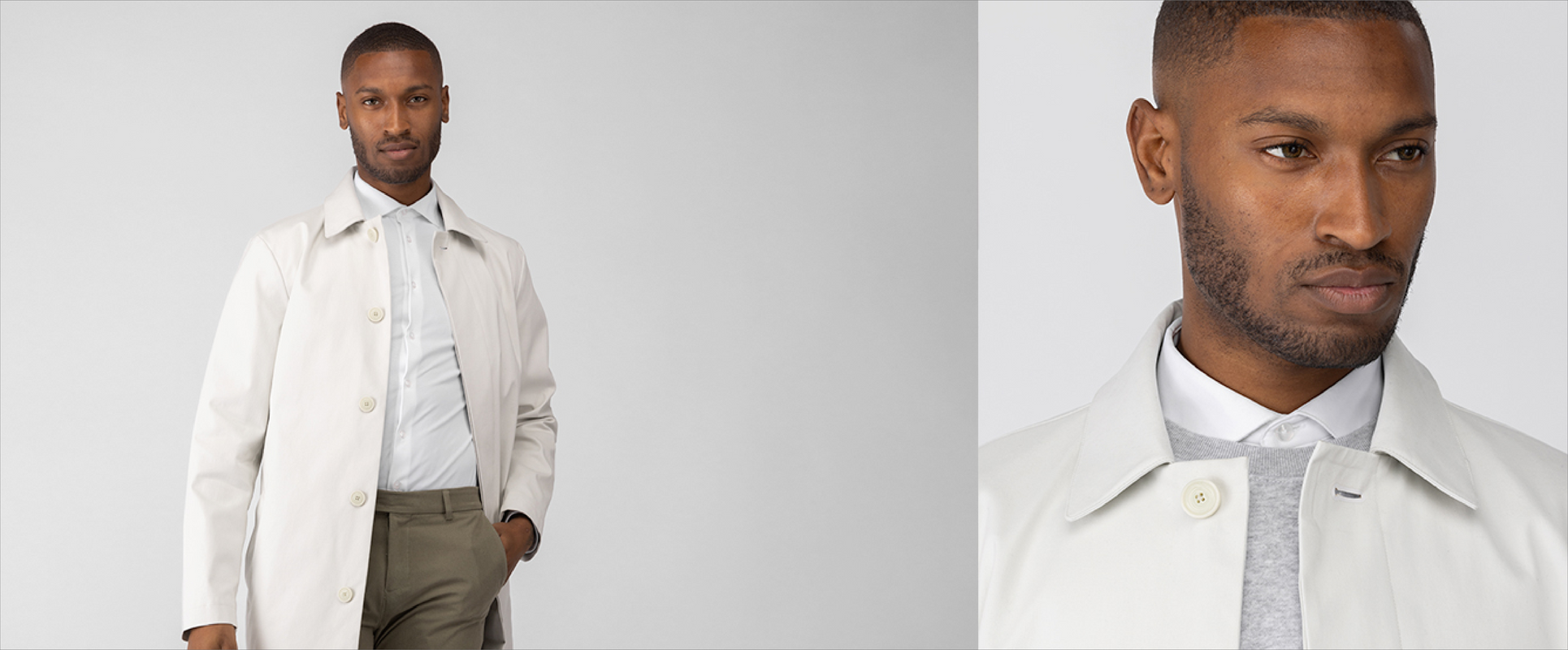 The look and feel of a classic trench coat, with the properties of a raincoat.