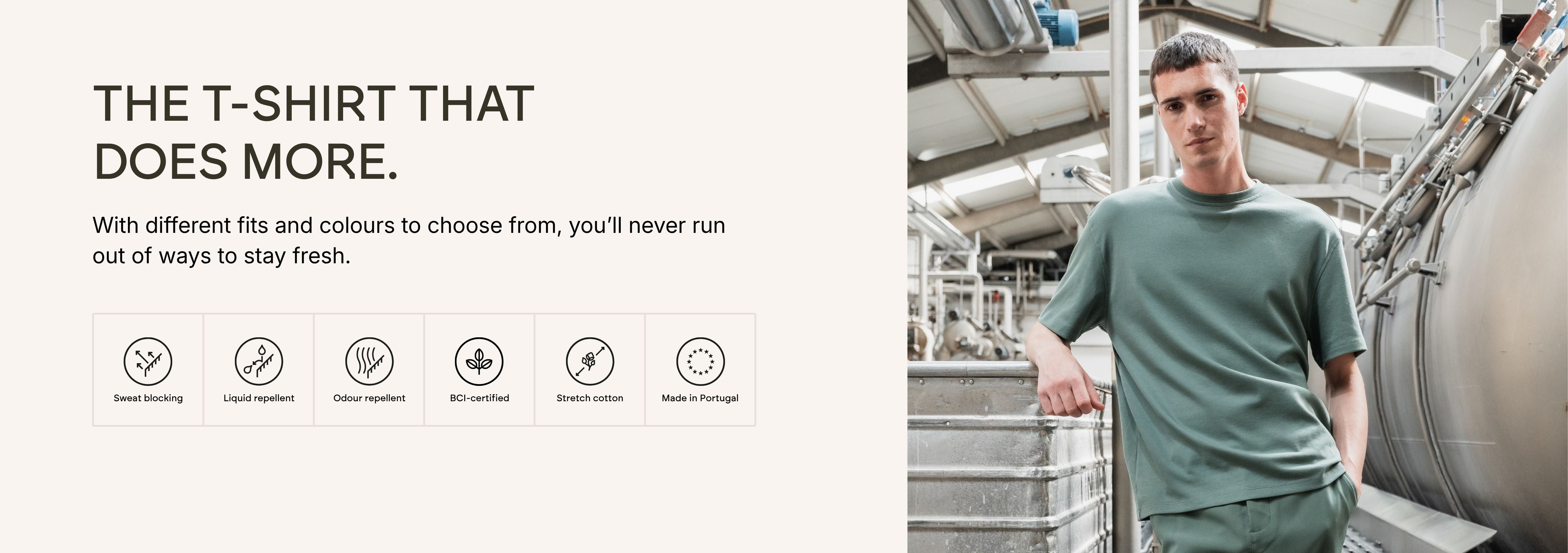 The technological properties in the fabric repels odours. Our customers wear our products 3.6 days on average before washing.