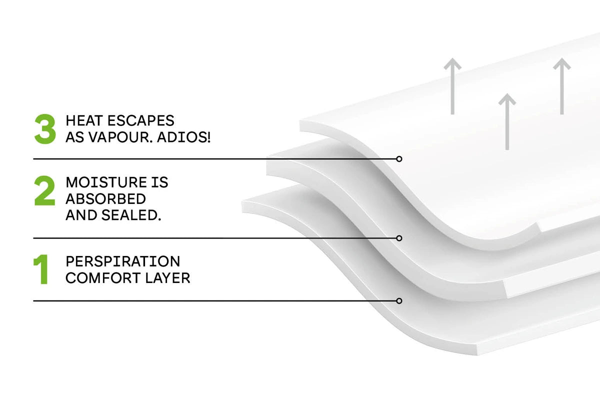 A triple layered armpit padding helps the undershirt absorb, and evaporate sweat as vapour. No visible stains, no compromise on comfortability.