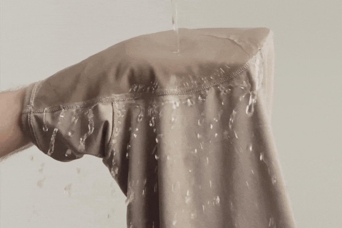 Vi har allerede fastslået, at vask næsten ikke er nødvendig, når du upgrader din garderobe til LABFRESH, men der er mere: Alle vores produkter afviser også væsker.