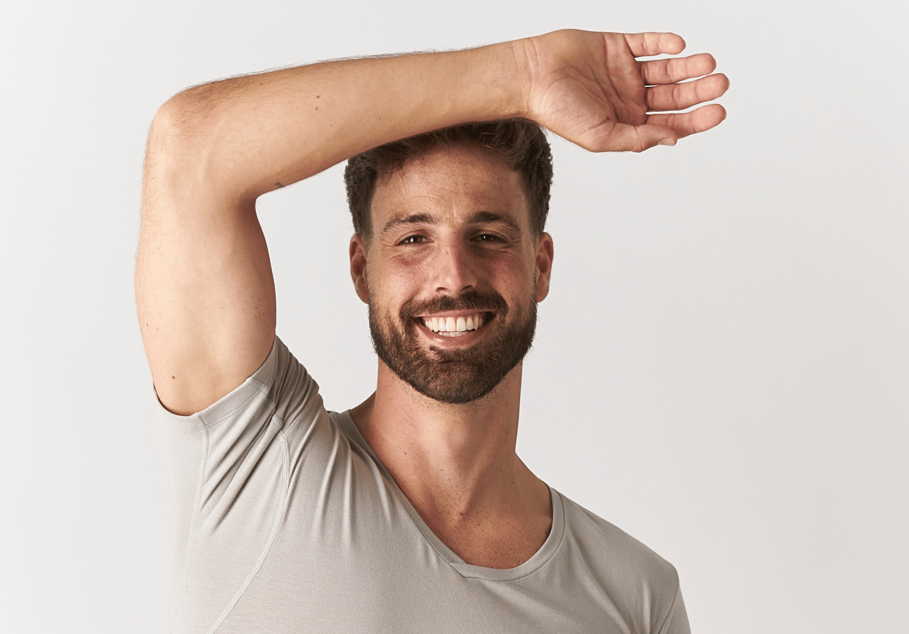 Kun t-shirts og undertrøjer har specifik teknologi, der aktivt blokerer svedpletter. De absorberer sved på indersiden, spreder den ud og får den til at fordampe hurtigere — så det er usynligt udefra i lang tid.