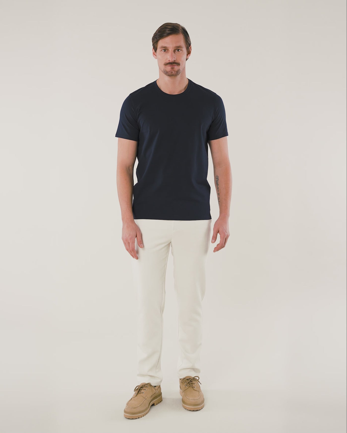 Den klassiske t-shirt – blød, strækbar og behagelig mod huden. Den afviser væske og lugt, samtidig med at den forhindrer sved i at trænge igennem. Spild preller af, mens det bløde, strækbare bomuld absorberer sved, neutraliserer lugt og skjuler pletter på ydersiden.